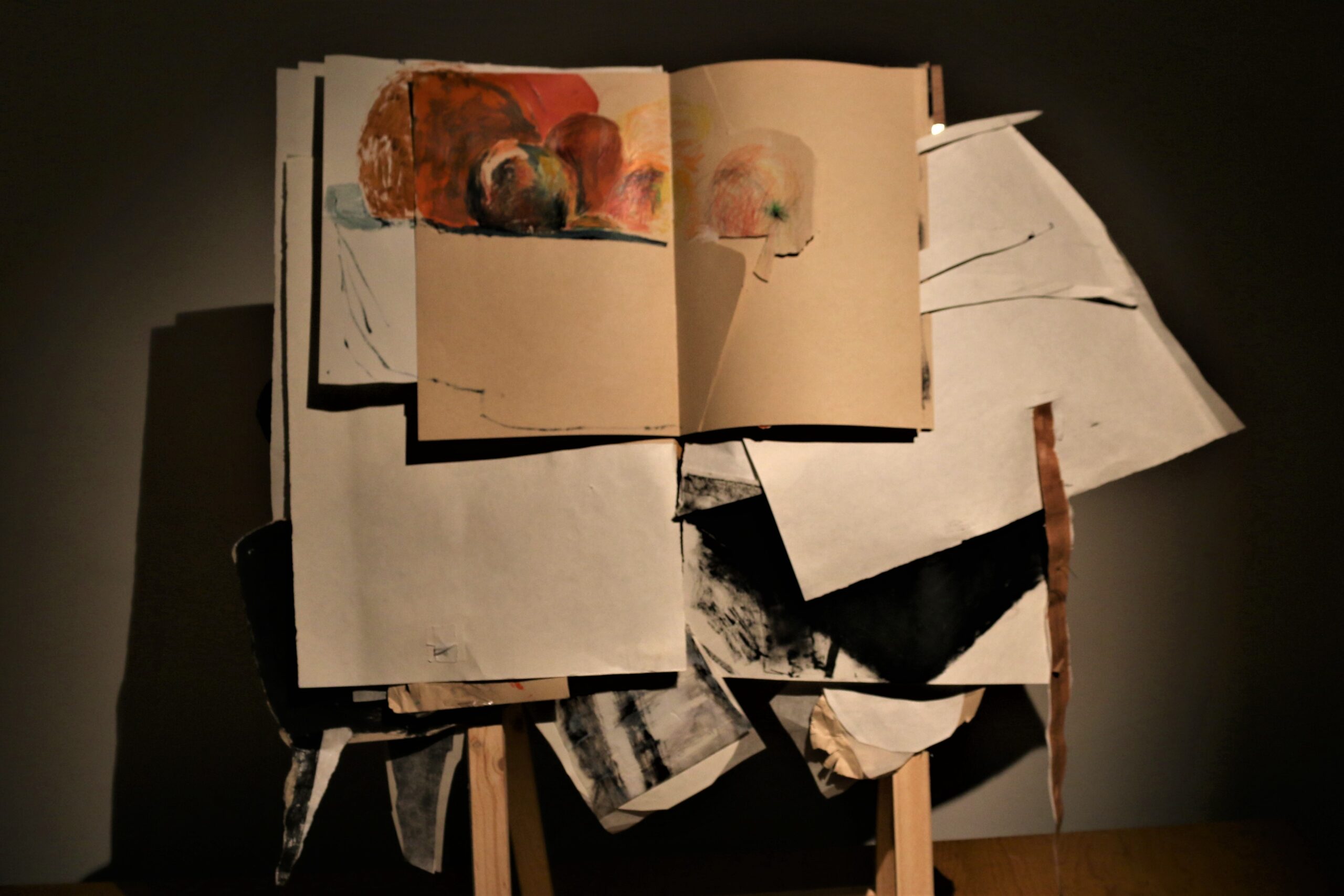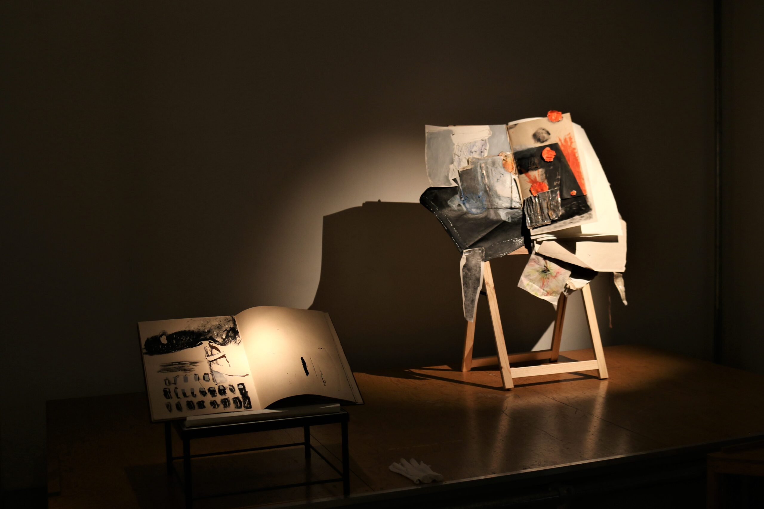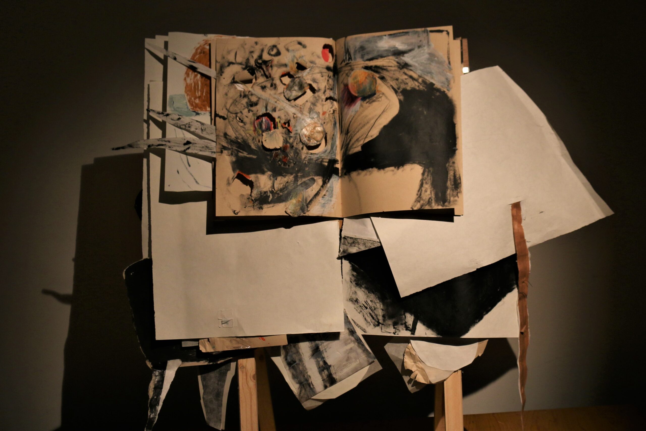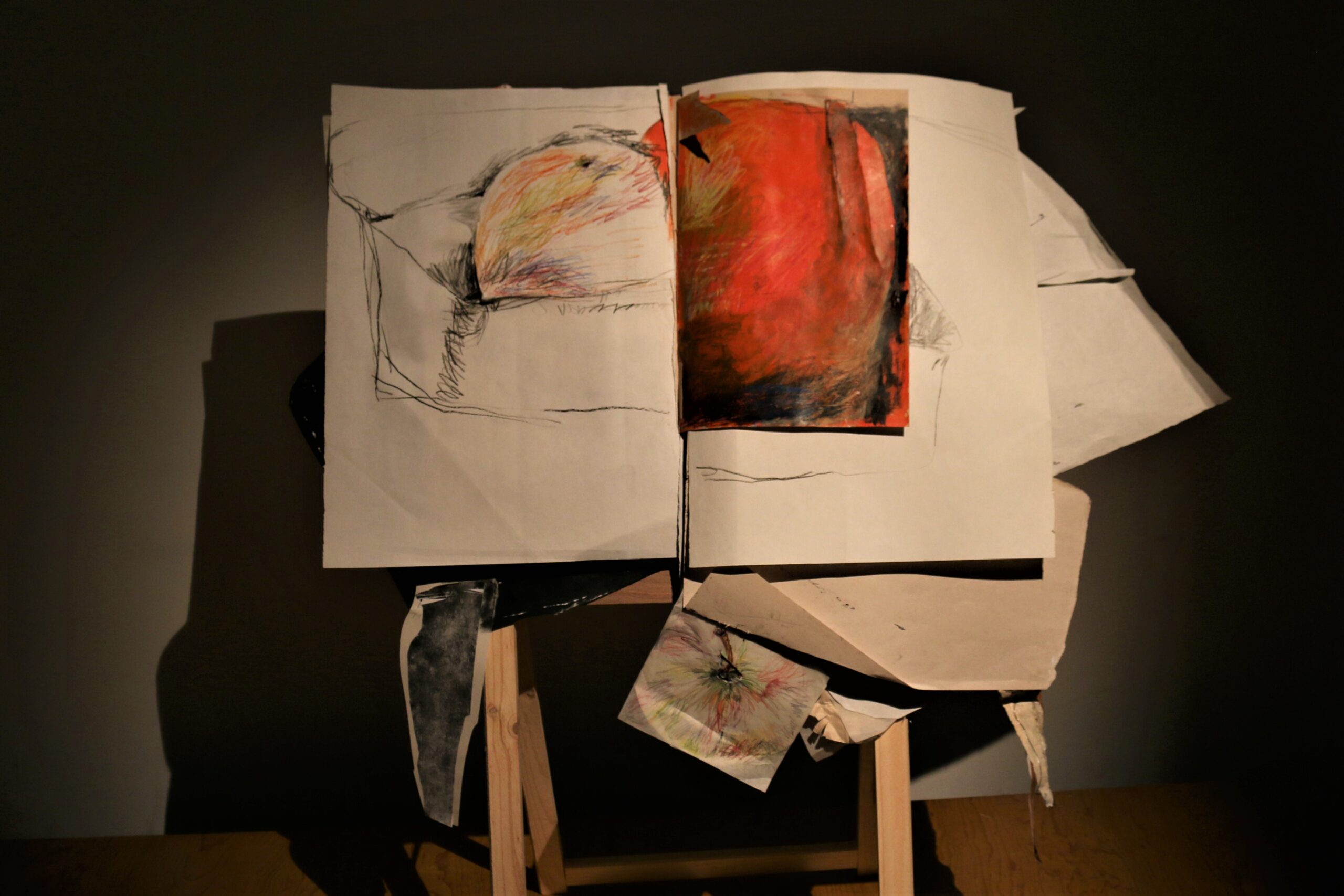 Mixed media in sketchbook, installation with light, 50*30, 2022-2024. (Presented in Jan Koos Feijlbriefs Levensspiegel, group exhibition, See Lab, The Hague, 2024) (Podium OCW, Graw, 2022-2025)