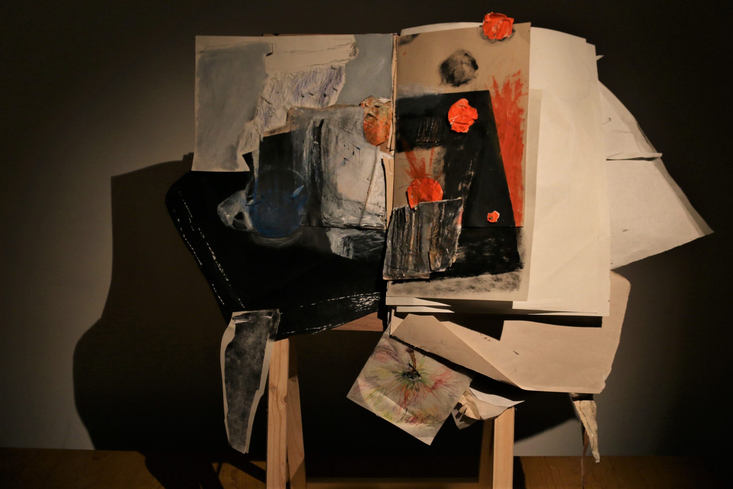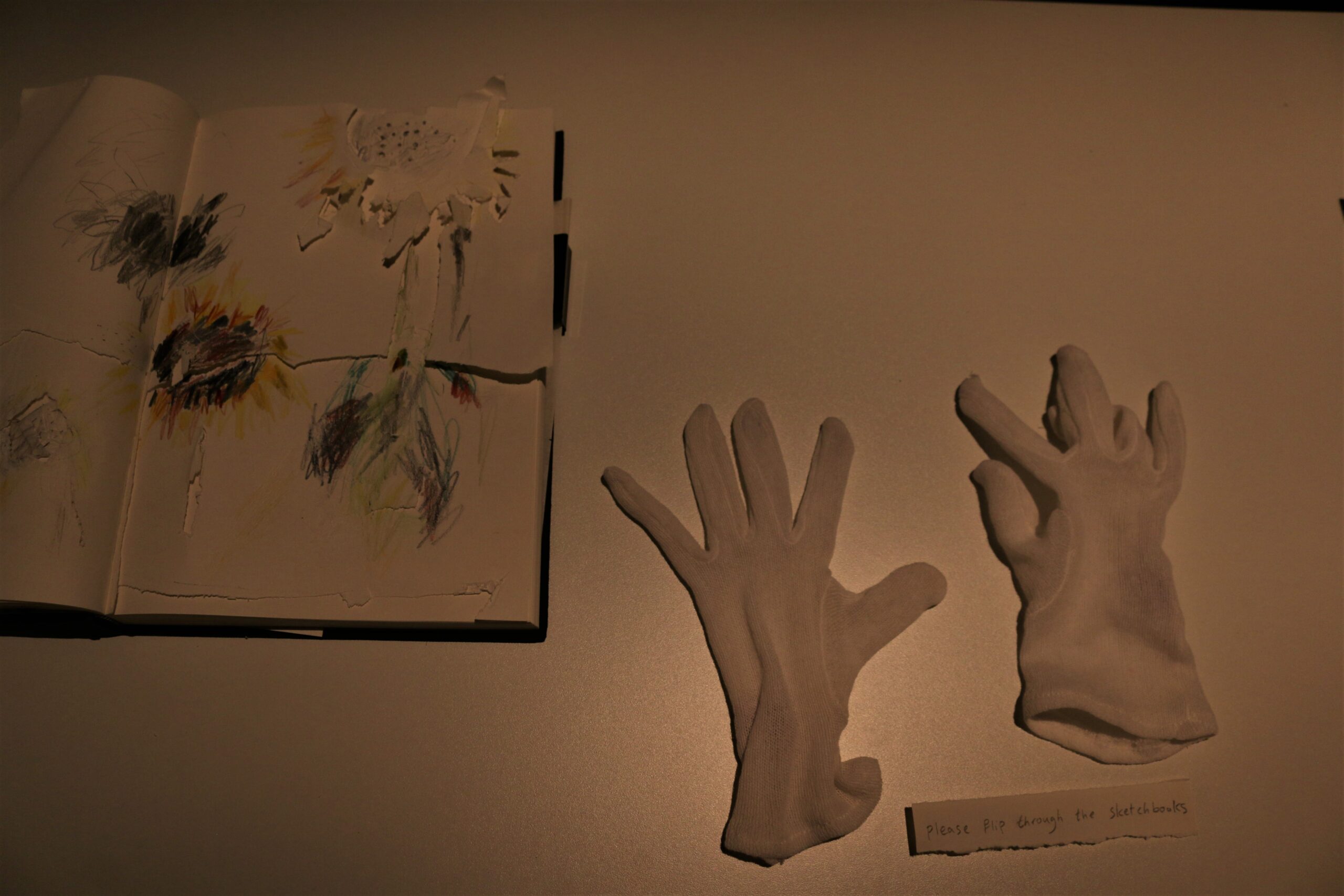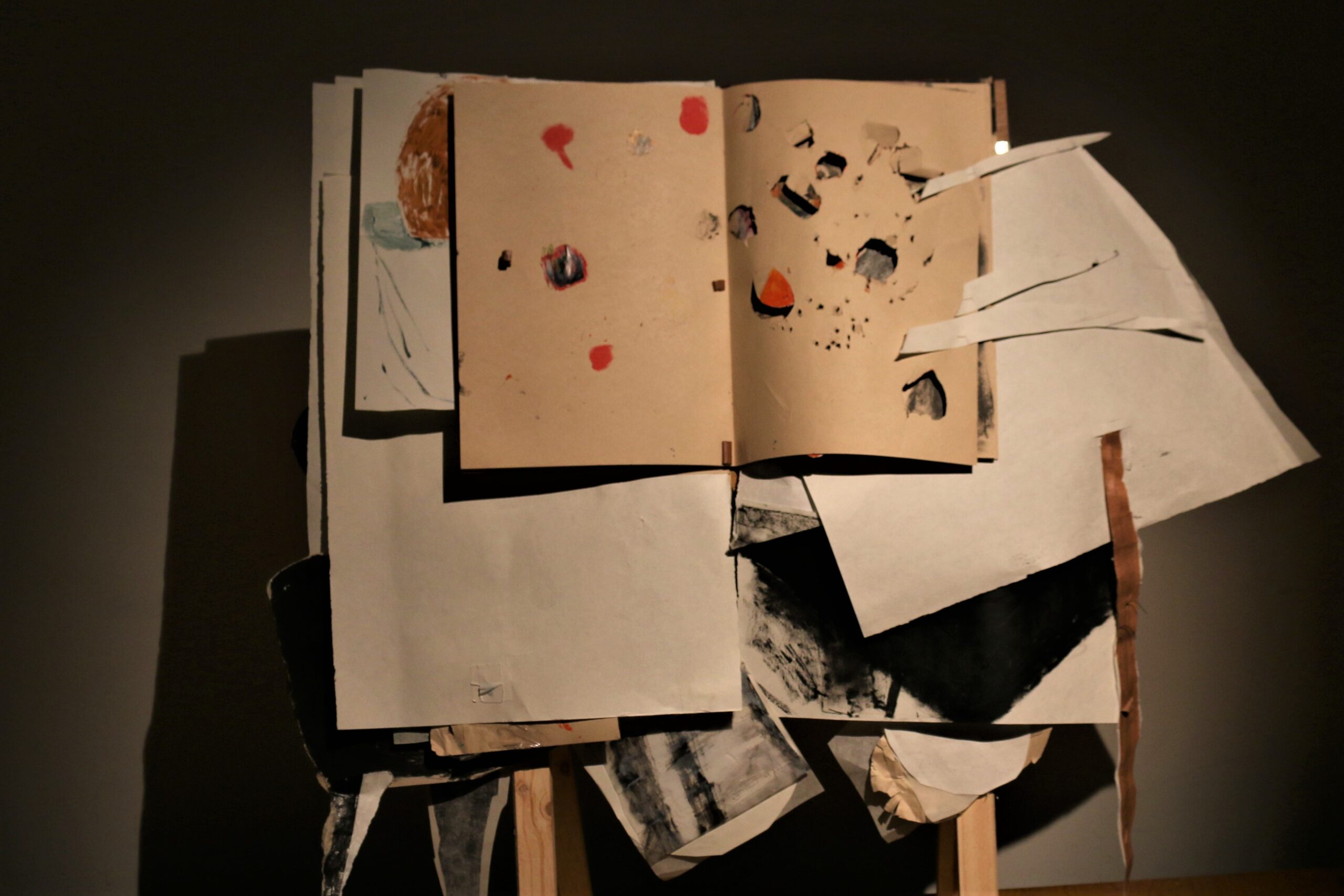 Mixed media in sketchbook, installation with light, 50*30, 2022-2024. (Presented in Jan Koos Feijlbriefs Levensspiegel, group exhibition, See Lab, The Hague, 2024) (Podium OCW, Graw, 2022-2025)