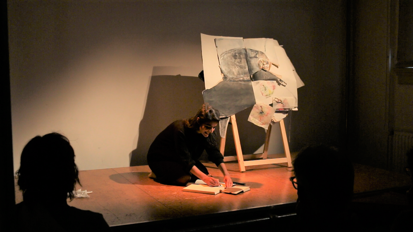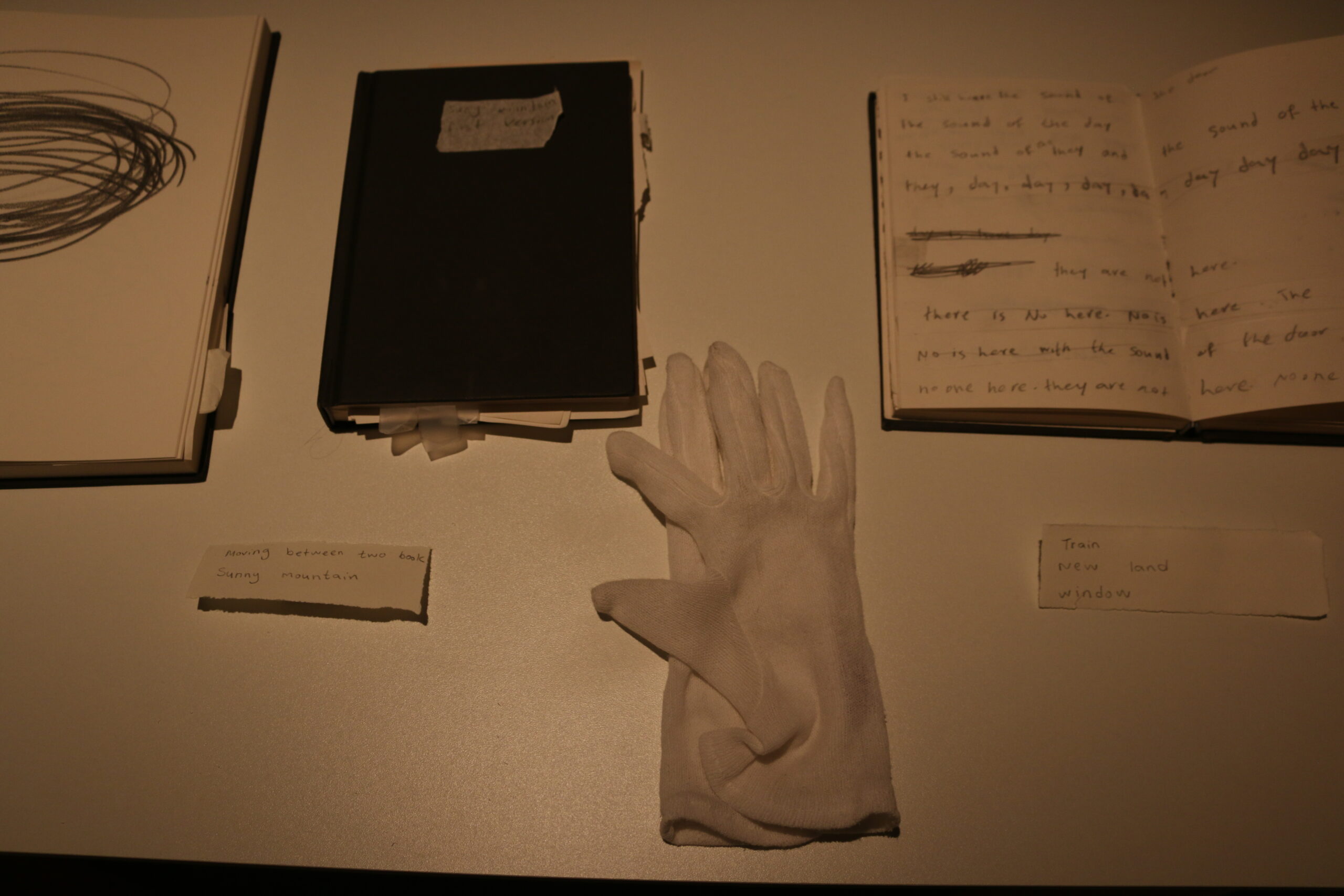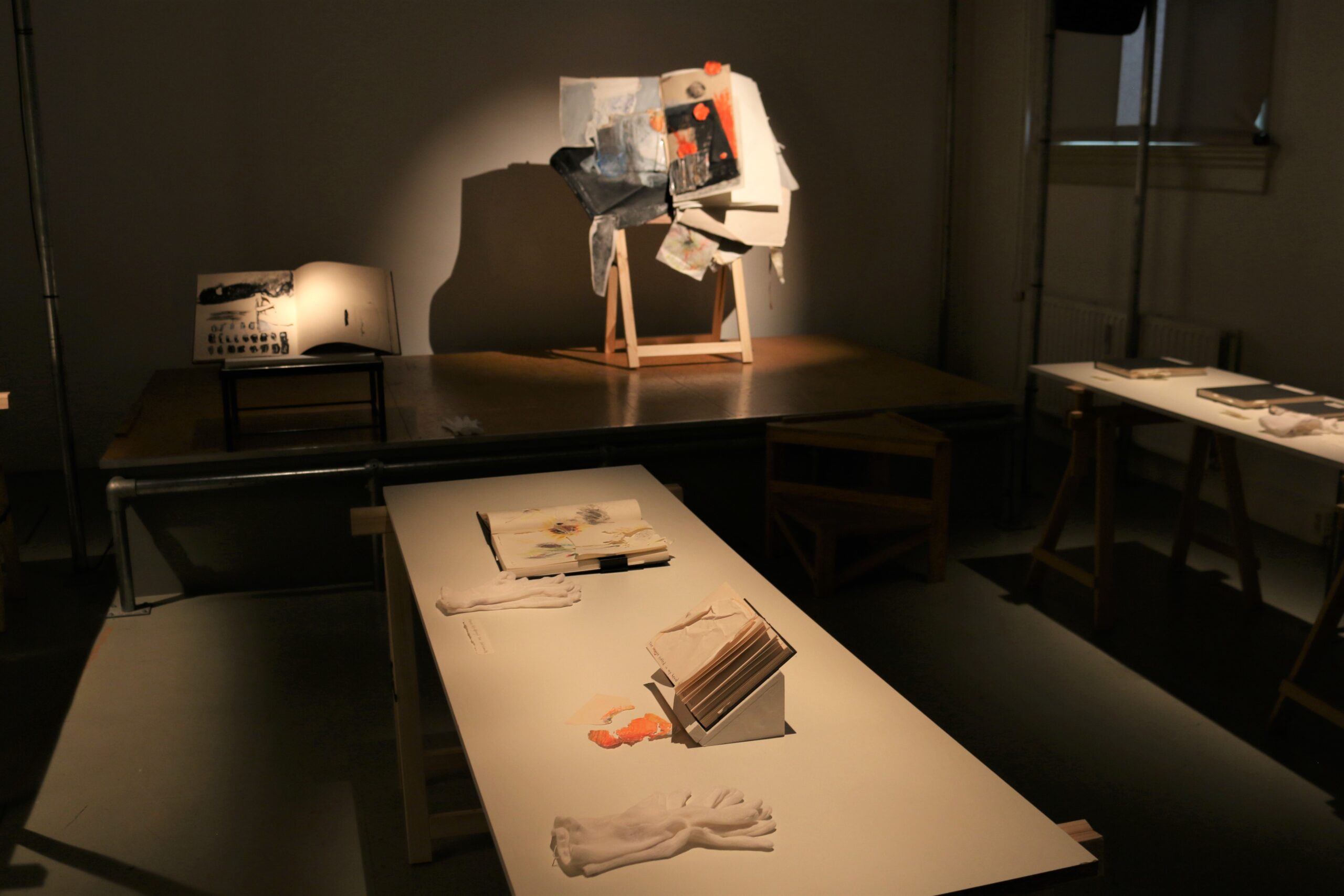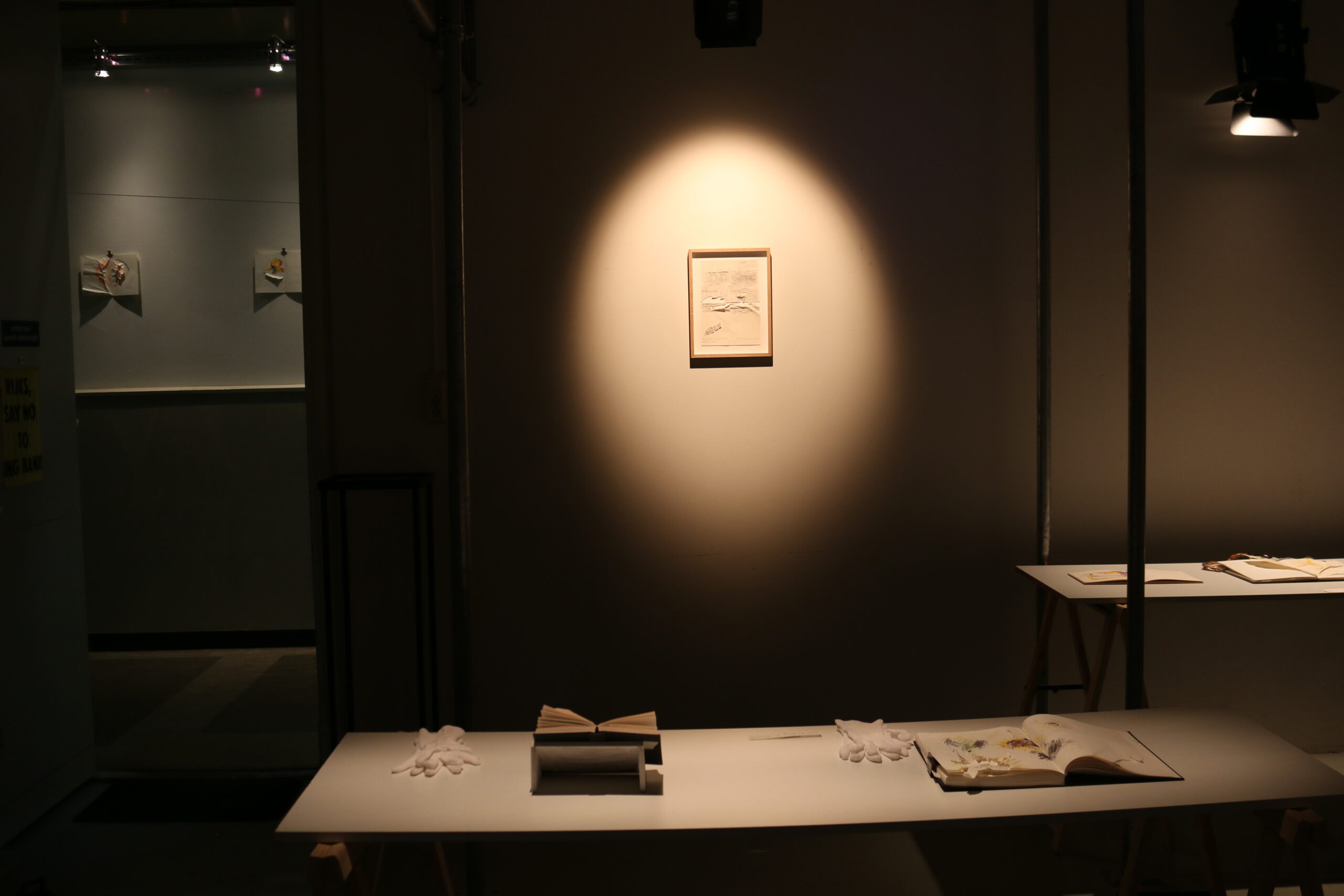 Mixed media in sketchbook, installation with light, 50*30, 2022-2024. (Presented in Jan Koos Feijlbriefs Levensspiegel, group exhibition, See Lab, The Hague, 2024) (Podium OCW, Graw, 2022-2025)