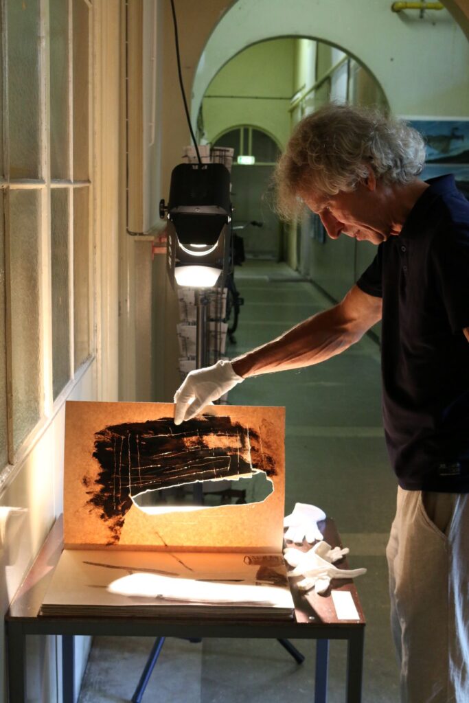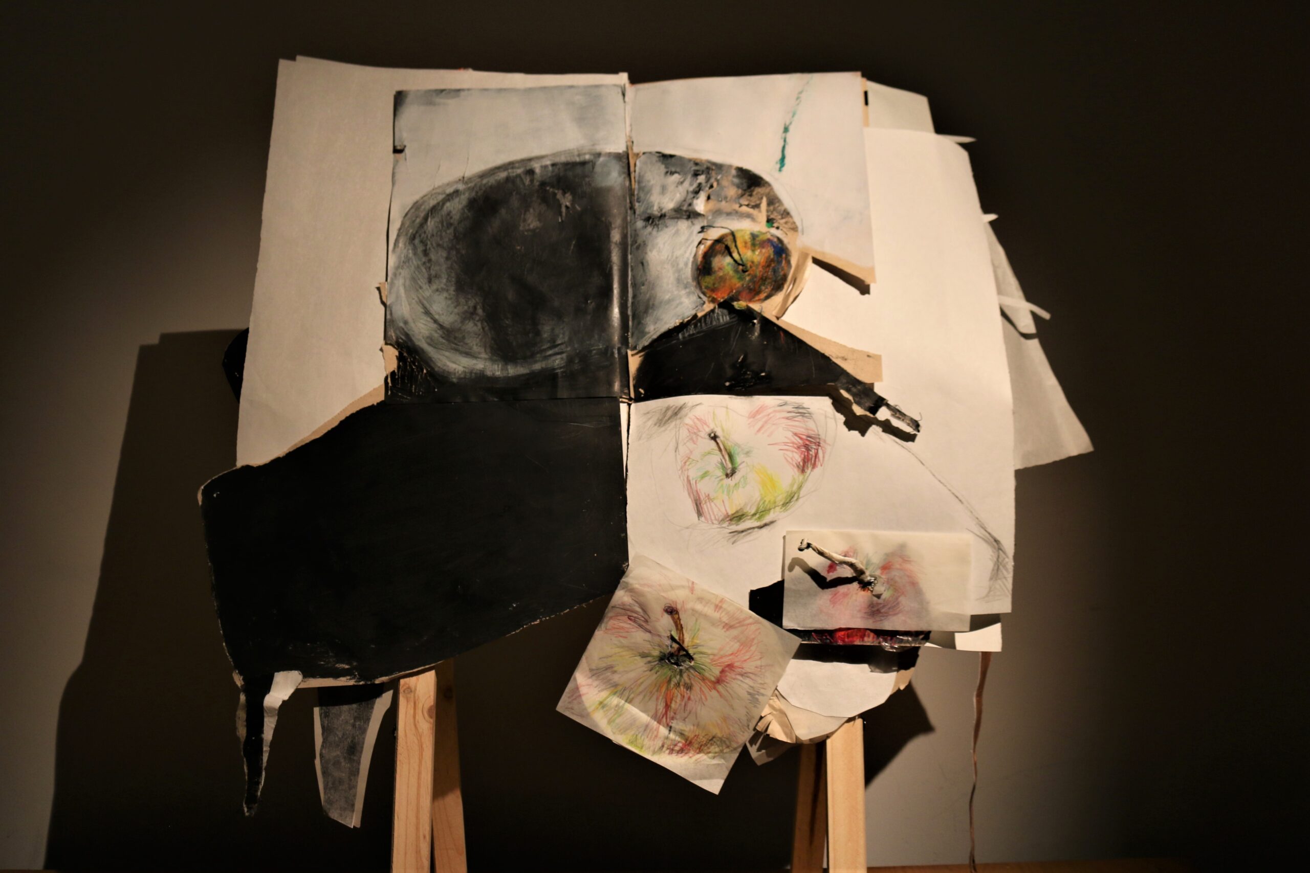 I think by scratching the paper, the audience is invited to move beyond the two-dimensional surface — to pass through the paper and go beyond it.