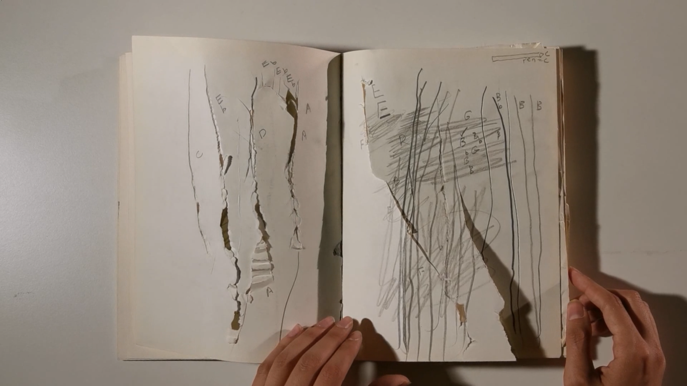 I explored the sound of different expressions and feelings of a pen, together with the sound of cello. I placed a tuner next to my sketchbook and wrote down the notation of each line. For example, a scratch could be an F note. I recorded the sound of drawing and its notations, then played them on my cello and recorded the cello sound. In the end, I mixed the sounds of the pen and the cello together.